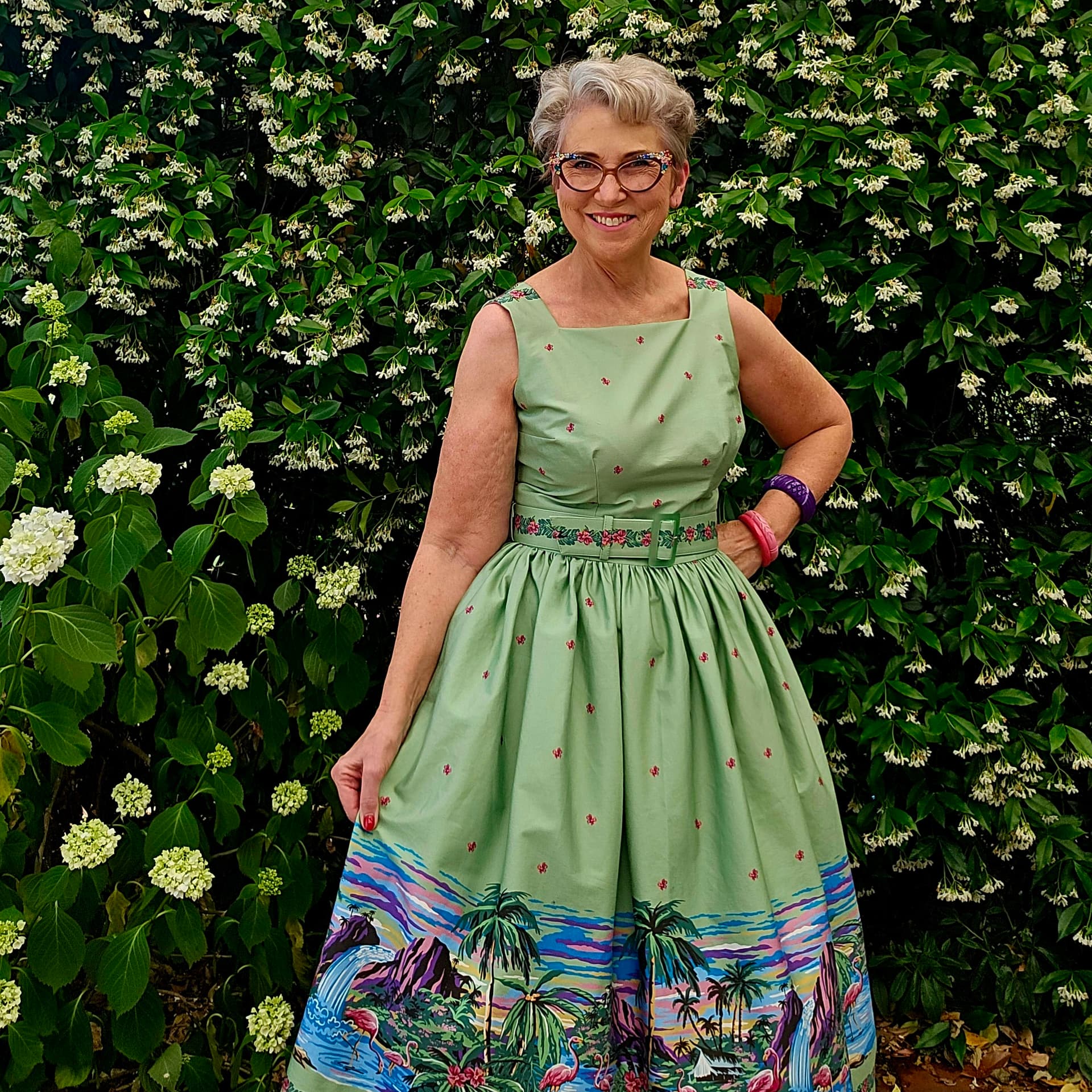What A wonderful dress. Such a great use for a border print. The belt is terrific as well.