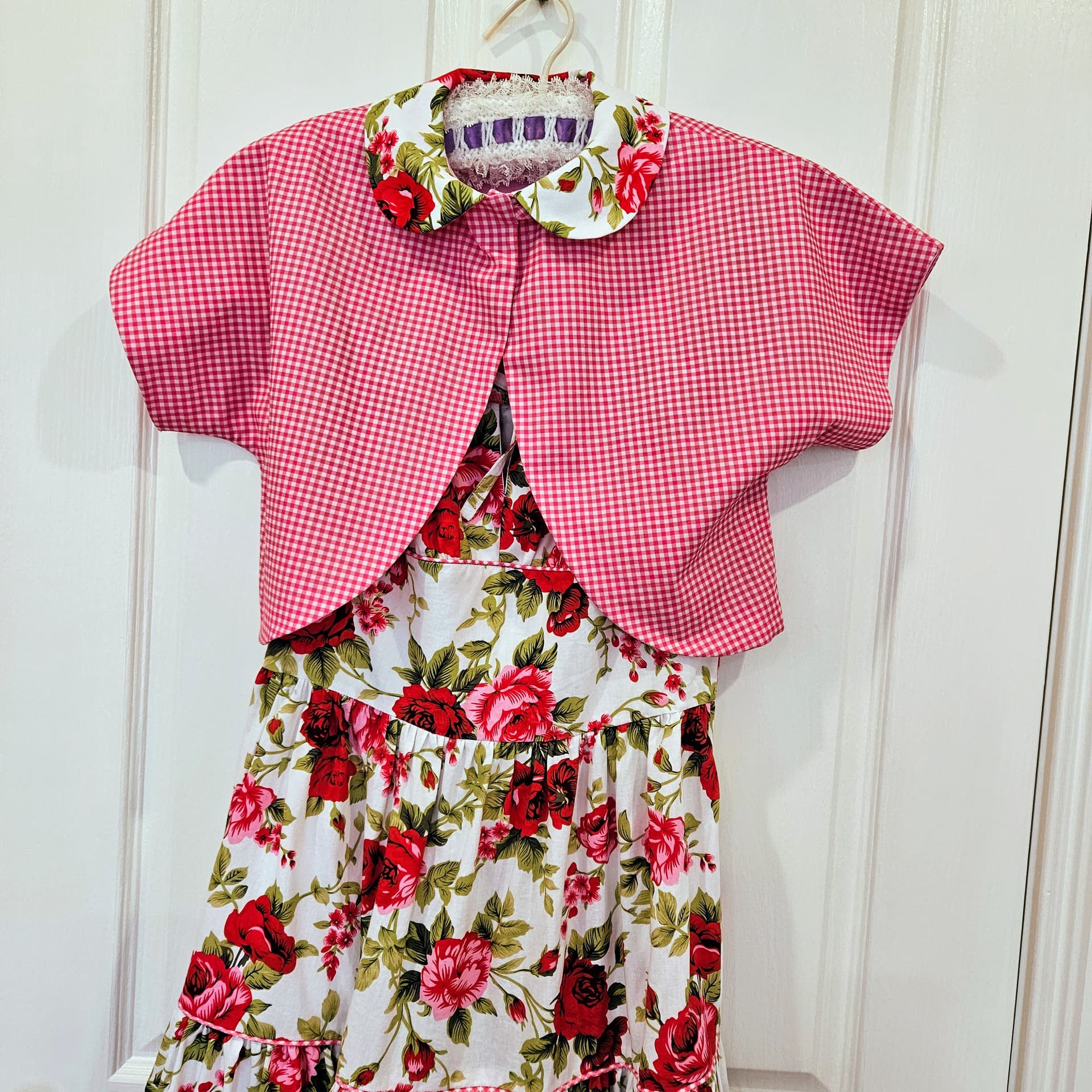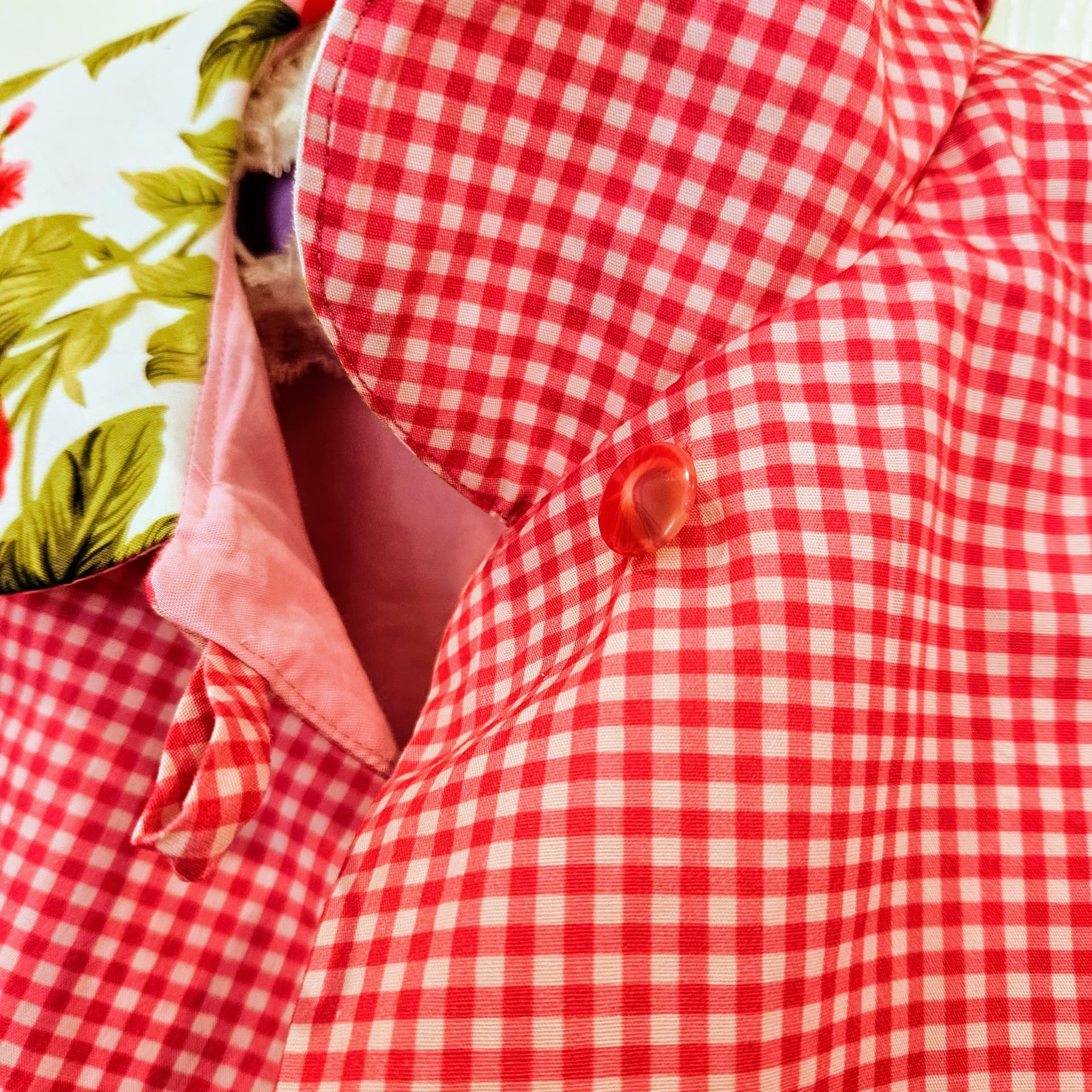 I’m very pleased with my completed Peter Pan Bolero. This was a Charm Patreon Pattern from the brand’s first year on Patreon. (I think it was the 2nd or 3rd pattern released.) It’s designed for stable knits, but I needed a topper for my woven Boardwalk dress. I love the collar on this pattern so much that I decided to make it in a woven fabric. I used the same gingham I used for the piping in the dress for the main body of the bolero. I fully lined it with a soft pink cotton lawn I picked up for pennies on a recent trip to the New York garment district. I added a button under the collar and roulade so I can wear it buttoned up or left open. I shortened the sleeve as I felt the original 3?4 sleeve would not work in a woven.