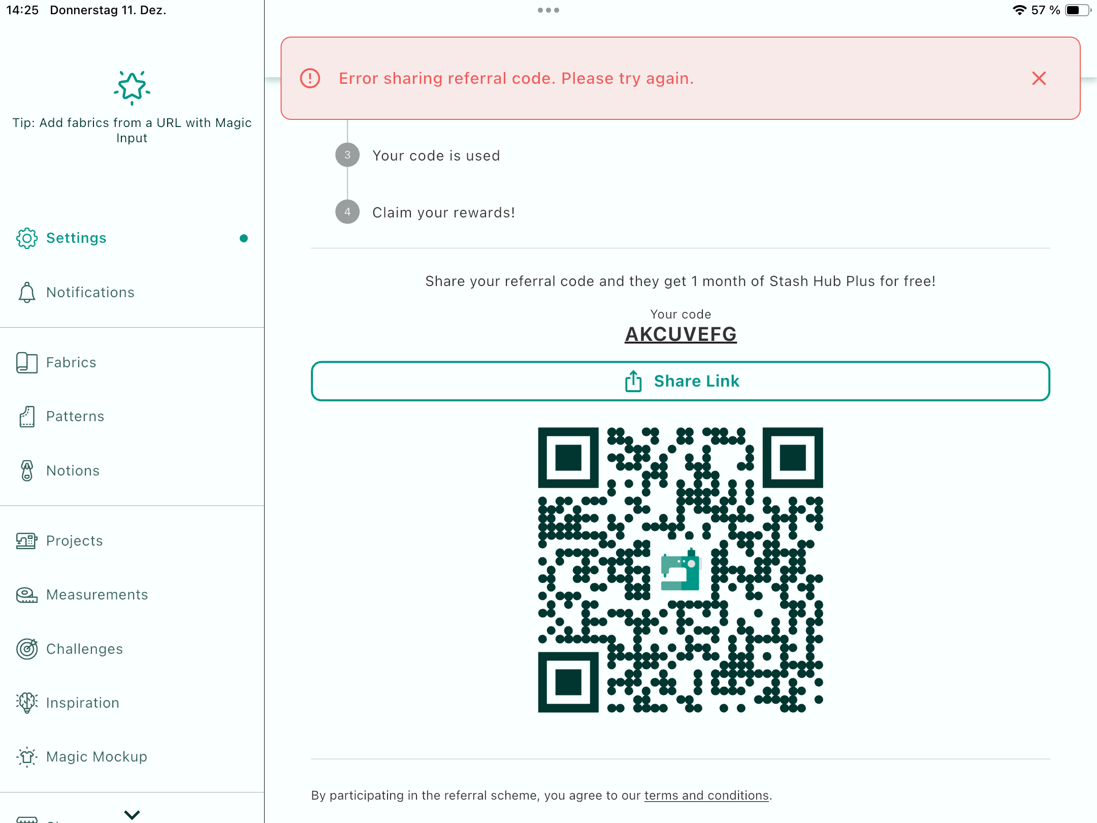So, I am trying to share the referral link with a friend, but keep getting this error message. Could that be fixed? Or should I just take a picture of the QR-Code and share that?