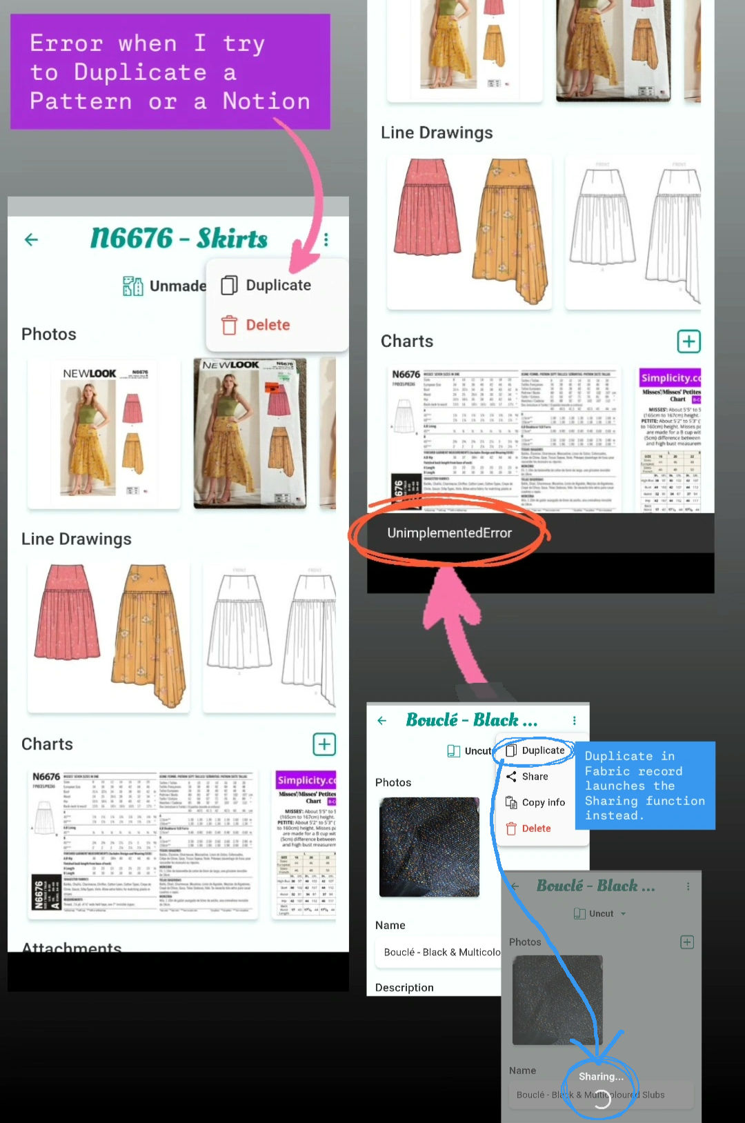 Trying to use Duplicate in Fabrics instead launches the Share function.