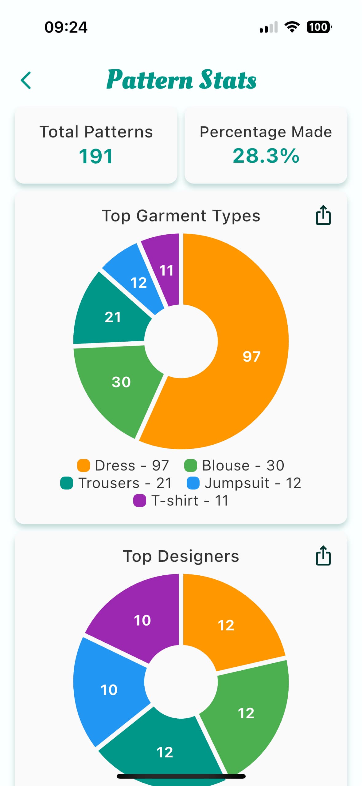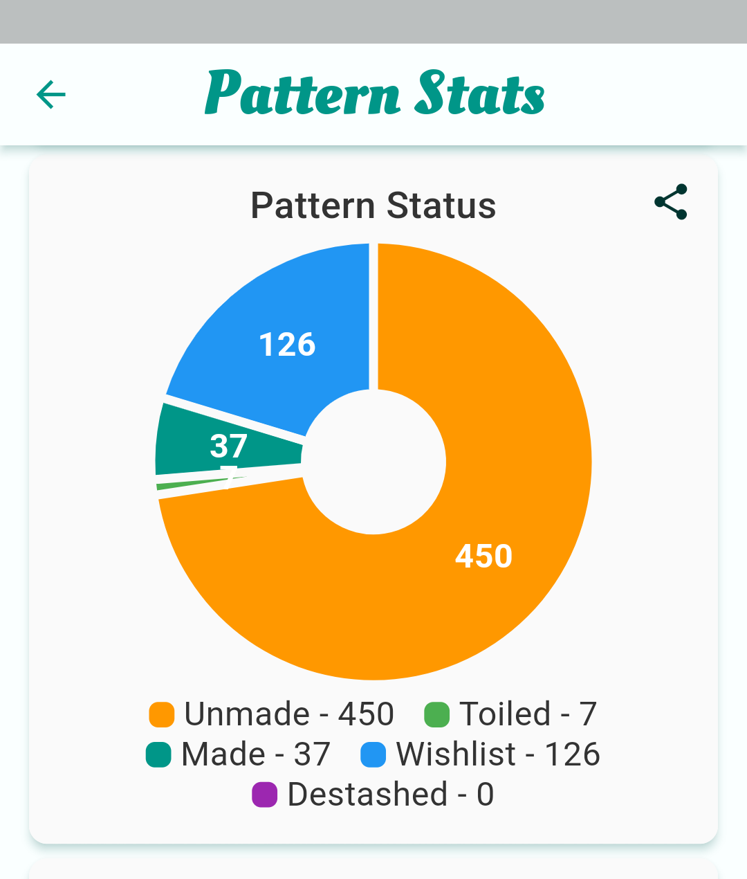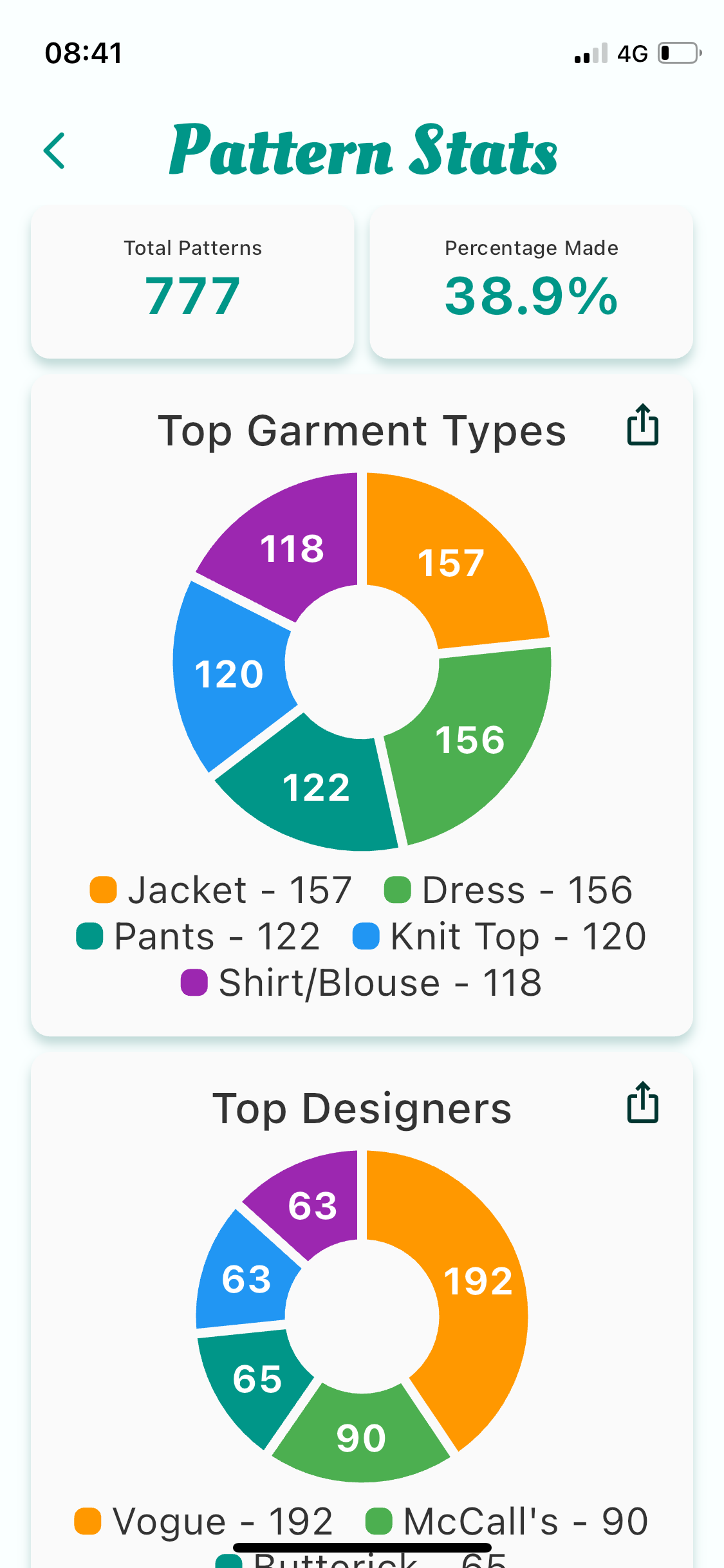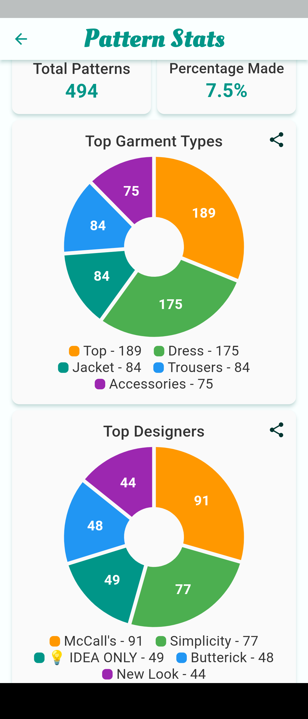 When I still had a decade’s worth of BurdaStyle magazines, my total was well over 3,000. Destashing the Burdas was what finally got me to start using Stash Hub. The idea of copying all of those patterns from my previous inventory app was just too much.