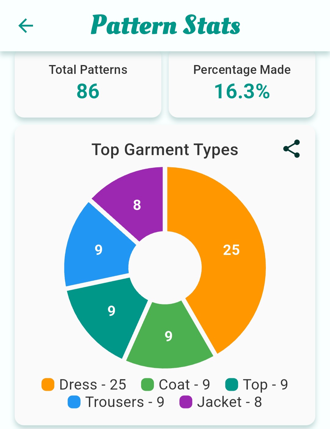 When I first started sewing a few years ago I was v purchase happy & bought a few books & any patterns I liked without much thought! I seem to have a lot with a low % made up, probably quite a few are from the books though.