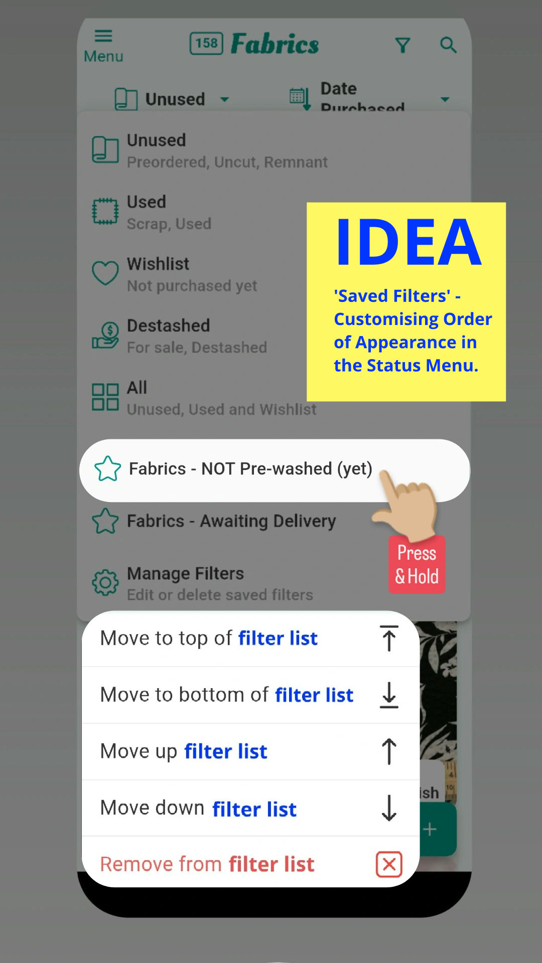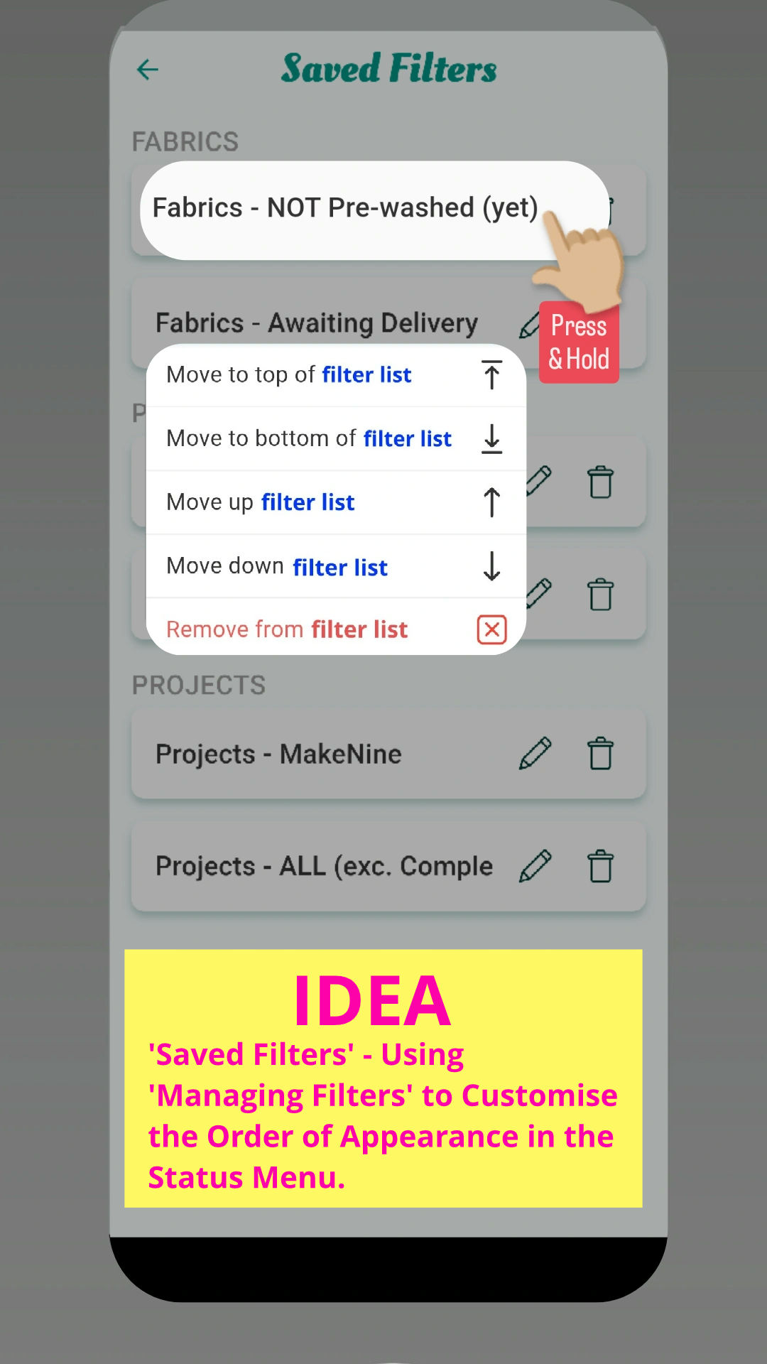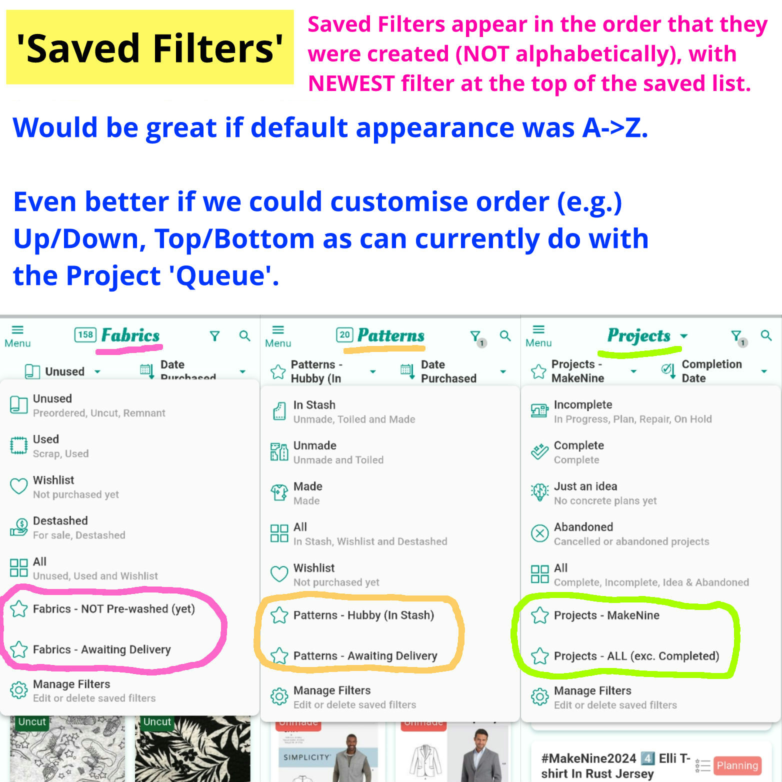 Please can we have the ability to customise the order of appearance that the ‘Saved Filters’ have in the menu ![]()