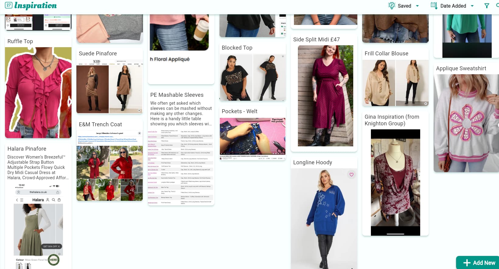 I decided to have the grid be more dynamic because images pulled in from links (and also just inspiration in general) is going to be much more varied (than a fabric or pattern image) and having a fixed aspect ratio would likely cut off a lot of the image.