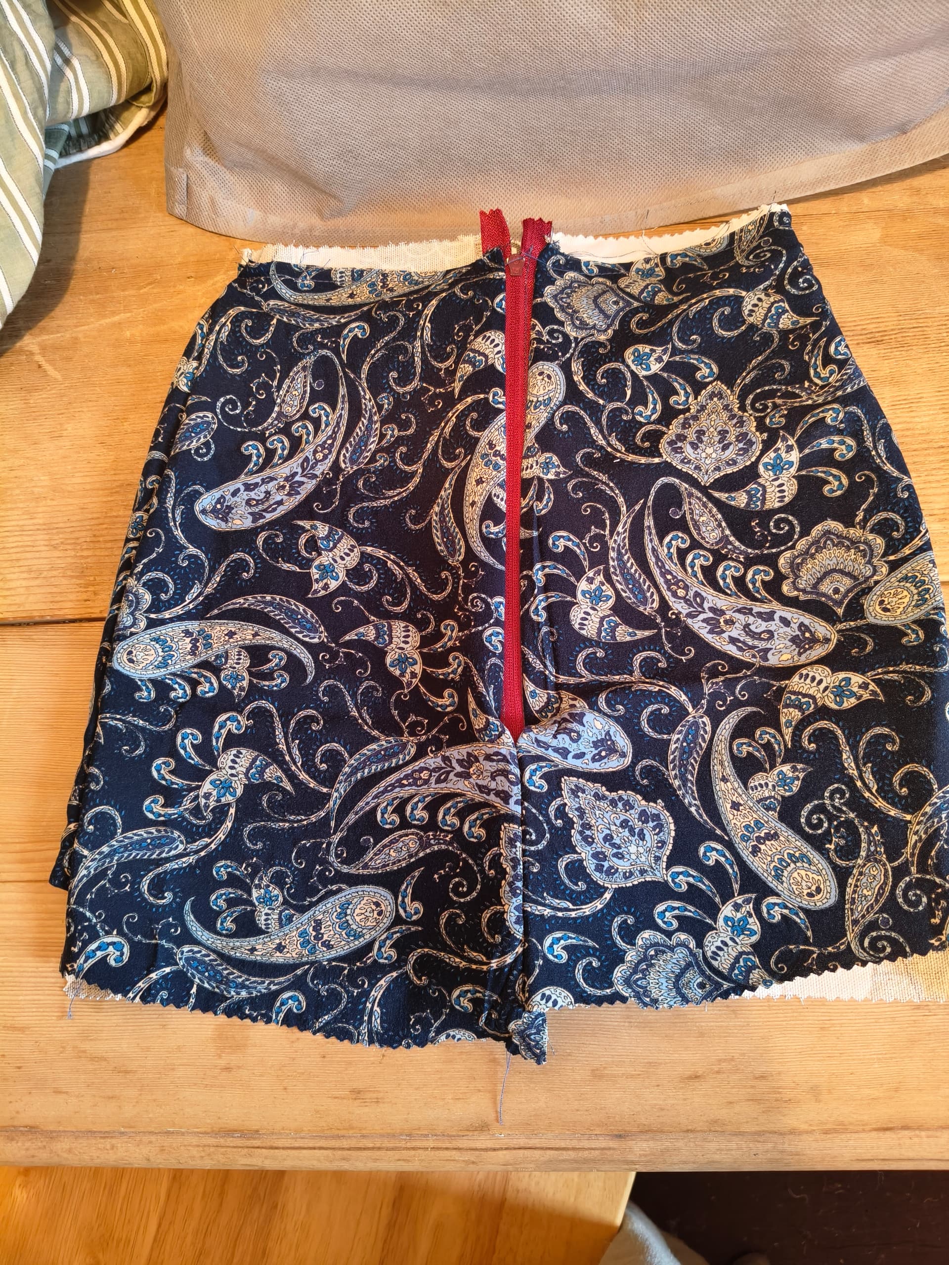 This is the invisible zipper method but I used a standard zip because I don’t have many. It’s not great sewing but it’s just to get the idea and well worth not messing up the real thing.
