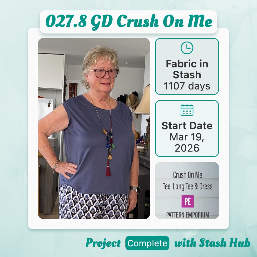 I’ve made the Crush On Me Tee several times. It’s a style that suits me well and is reasonably easy to make if you have learned the technique for the bands. For the bands I used the same fabric I used for the body of the garment (with a 1" featherweight knit stabiliser in the neckband because the fabric needed a bit of support) and cut the bands 85% less than the length of the neckline and armsye. The fabric is Double Brushed Poly from Lush Fabrics in Western Australia The pattern is designed by Pattern Emporium an Australian Pattern Design Company; their patterns are so good I’ve collected nearly all of them. Their instructions are the best I’ve encountered. I’ve learned most of my sewing techniques from Pattern Emporium’s instructions. Previously I’ve used ribbing for my bands, but the last few makes, incorporating bands, have inconveniently stretched out after a few washes; so this time I used bands made from the main fabric; it worked well.