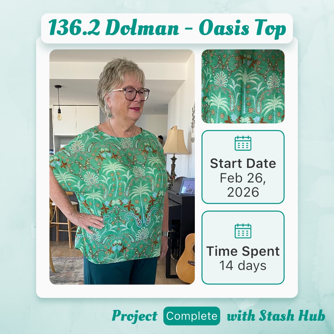 I refashioned a long scarf coat into this dolman top. The pattern is one I drafted myself using software: Garment Designer. The material was so fragile I had to stabilise every stitch. I dont think the garment will survive much wear because it catches easily, that said, I love the fabric’s Oasis pattern and colour.