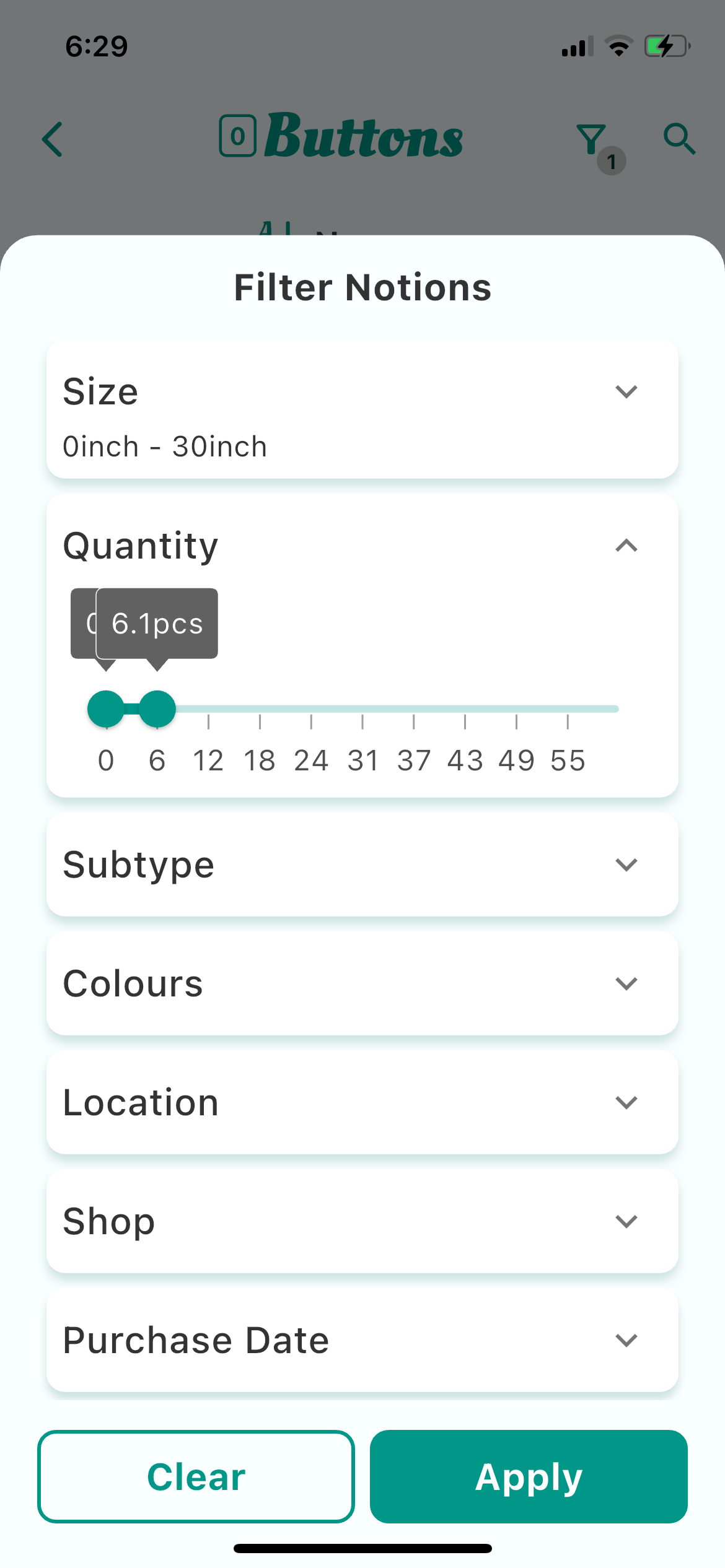 @TheWizard Not sure if this is a feature or a flaw, but under Notions I tried to filter Quantity to 0 so I could isolate the newly bulk added buttons for updating their details. I’d like there to be an easy way to do this like there is for patterns and fabric and was hoping this would work, but I ran into issues with this that might help with development.