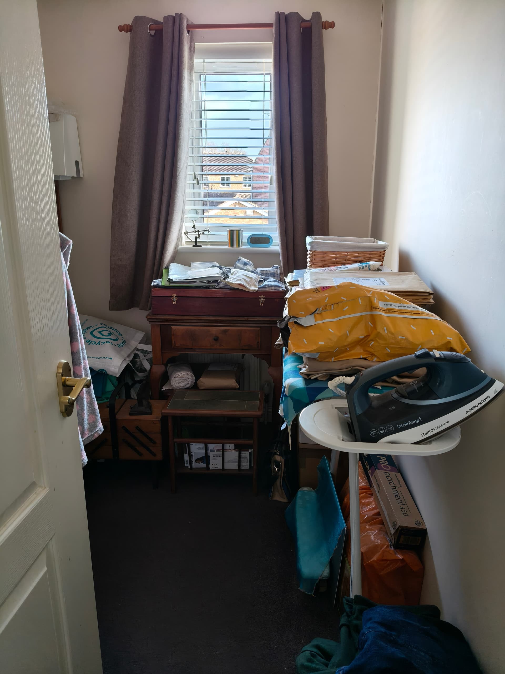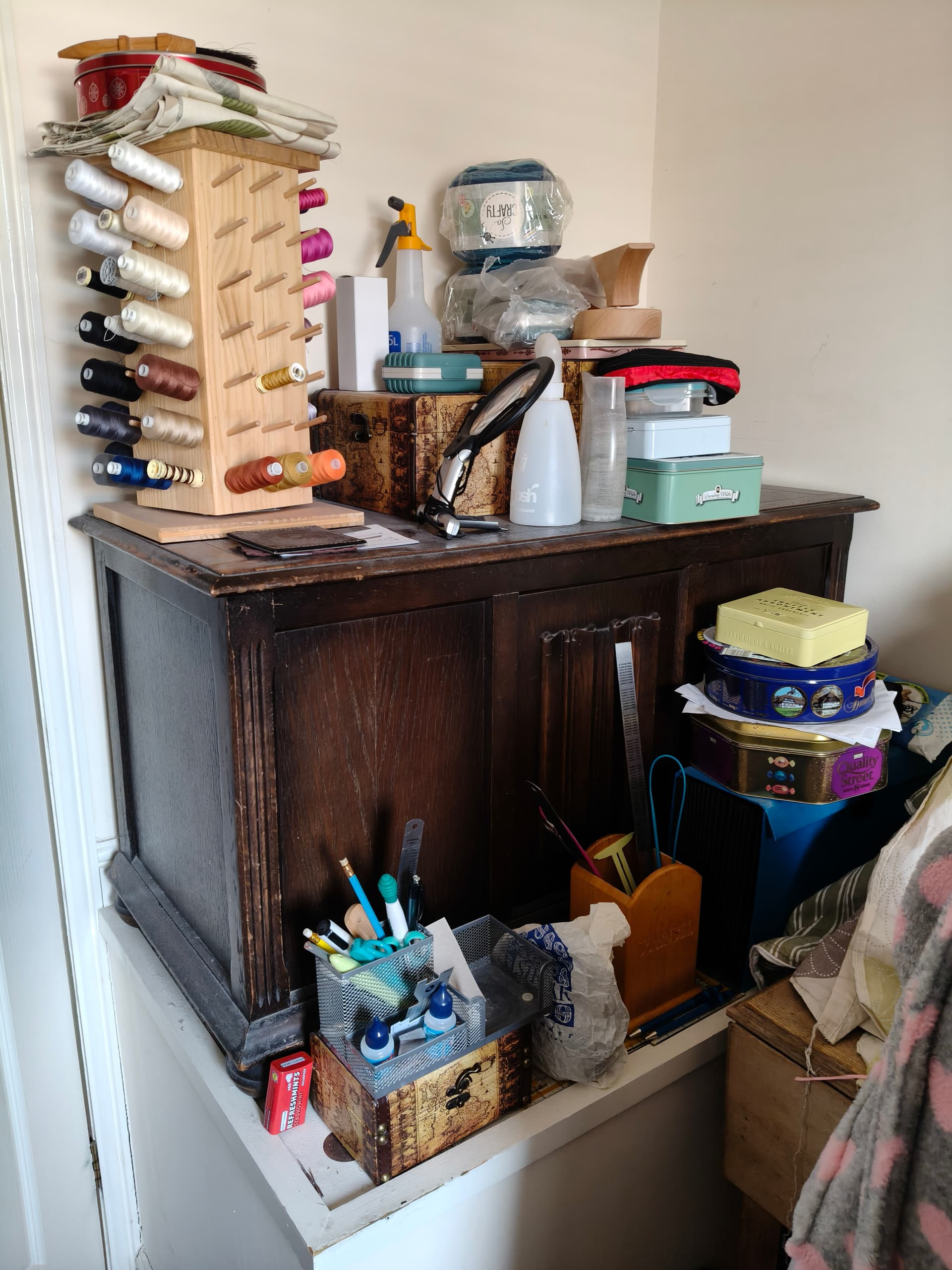 I’ve decided on a complete change. I’ve got new IKEA storage and desk hopefully with space for everything. I’ve took the ironing board out and bought a table top one. I’ve also got a tall second hand book case to store my pdfs. Do far I’ve sorted out my patterns. Everything else is in boxes or stacked up waiting for the units to be built. I am also having a big clear out of stuff I know I will never use.