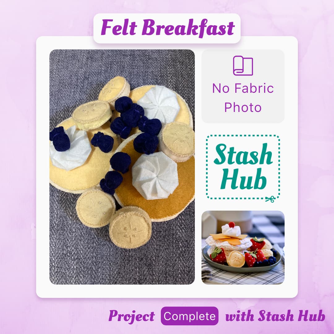 My granddaughters at the age when imaginary play is everything. And with pancake day coming up I thought I’d use ss our theme for the day.i found a free pattern for a breakfast felt play set. Including pancakes, blueberries, banana slices and whipped cream.the set never quite made it for the day., but we had great fun with it today..Additional strawberries and satsumas are previous makes.