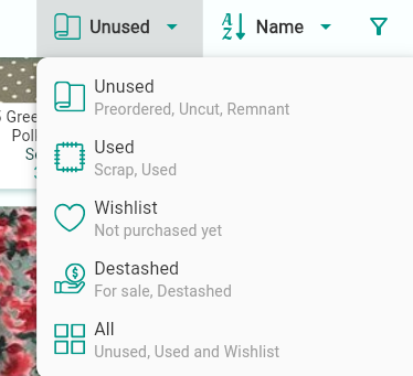 I just recently spotted and used the Pre-ordered option under fabrics for the first time and wondered if anyone else felt that this status would be better placed under the Wishlist heading? Currently it’s under ‘Unused’ so by default, anything preordered shows up and I have to filter out by actually filtering IN the other options. It doesn’t feel logical to me as I’ve not currently got the fabric, so can’t actually use it (where as everything else in unused is currently available to me).
