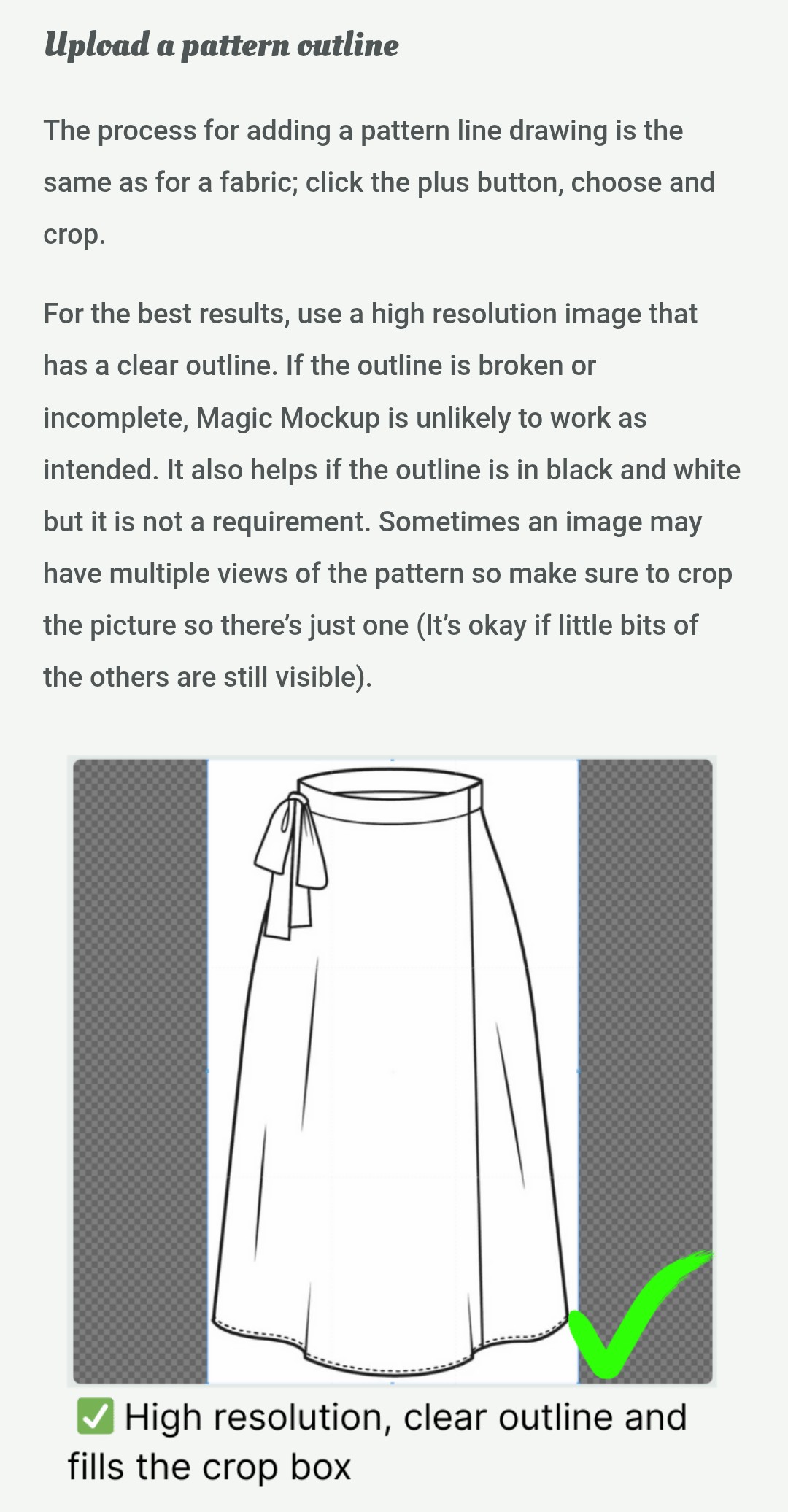 I think my issue is the line drawings that come with my patterns, some of them don’t have any and the ones that do, won’t work in the magic mock up for some reason