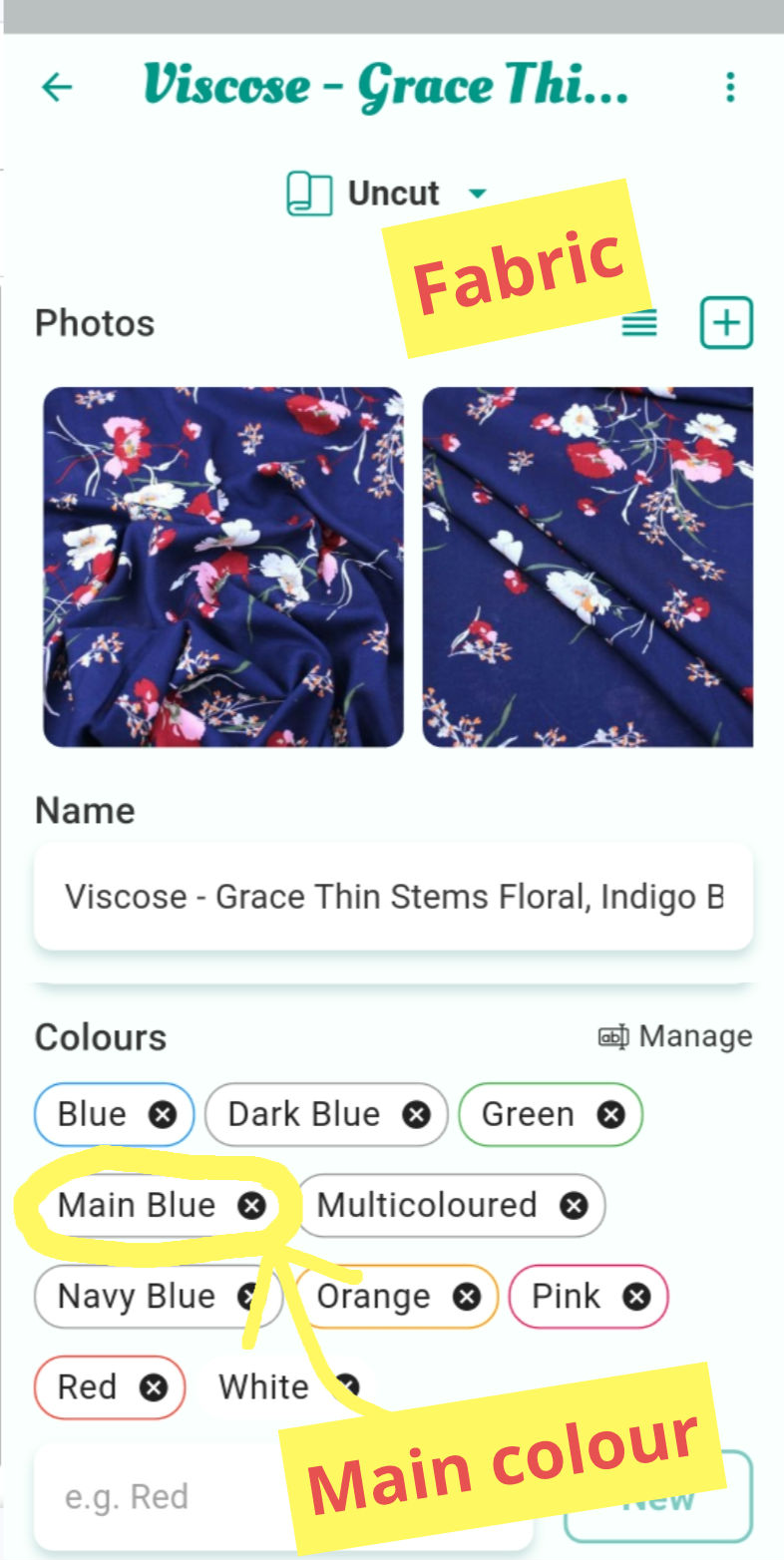 Thanks for the quick response. Yes, I knew I could do that, and it is helpful to do it, but what I was trying to say, but missed the mark, was on the main fabric page, where you can see all of your fabrics at once, I wanted them to pop up with for example, all the blues together, then the mustards, then the greens, then the pinks, ( order doesn’t matter, that’s just for example). I’d like to see all of my fabrics at once, but sorted by main colour in their groupings. I wanted to use it for inspiration like people often do when they have open shelves and sort each shelf by colour. They can see all of the colours, but it isn’t overwhelming because they are shelved by colour. Each fabric would probably have to be categorized with the main colour listed, either as you just demonstrated, or in a second section as main colour. Then on the main page, rather than “sort by colour” which looks at every colour you have listed and inadvertently scrambles the fabrics with no rhyme or reason to the colour, because most fabrics have more than one colour in them, just have them sorted by main colour that was listed when making each individual fabric page. It would have worked great the way it is , if all fabrics were solids, but mine certainly aren’t. For some reason, the more colours they have, the prettier they are. ![]()