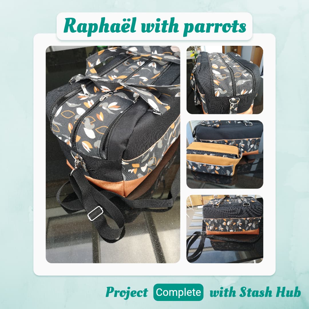 Hello, I’ve finished the travel bag Raphael from the French designer Dodynette. I used the same fabric with parrots as for the toiletry bag (Camille from the same designer) to have a coordinated set.