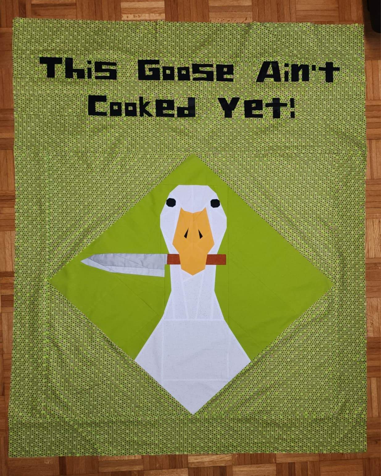 Happy New Year my sewing friends! I had hopped to finish this by the end of last year, but illness slowed me down. Long story short, my SIL told me Dec 20th, that she is having surgery the end of January, and, well, she needs all the positive vibes. She gifted my hubby (her brother) a fuzzy blanket he would NEVER use, so in my creative process, not only did I decide she needed this goose to reminder her that she is a fighter, but I used the fuzzy blanket as a backing! I have it quilted now, and only have the binding left to do!! Hoping to be healthy enough to do that later today!
